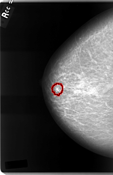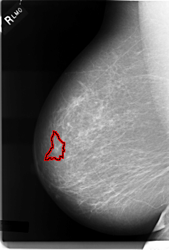 FILE: C_0003_1.RIGHT_CC.OVERLAY TOTAL_ABNORMALITIES 1 ABNORMALITY 1 LESION_TYPE MASS SHAPE IRREGULAR MARGINS SPICULATED ASSESSMENT 5 SUBTLETY 5 PATHOLOGY MALIGNANT TOTAL_OUTLINES 1 BOUNDARY |