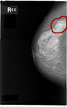 FILE: C_0004_1.RIGHT_CC.OVERLAY TOTAL_ABNORMALITIES 1 ABNORMALITY 1 LESION_TYPE MASS SHAPE IRREGULAR MARGINS SPICULATED ASSESSMENT 5 SUBTLETY 5 PATHOLOGY MALIGNANT TOTAL_OUTLINES 1 BOUNDARY |