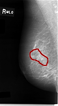 FILE: C_0007_1.LEFT_MLO.OVERLAY TOTAL_ABNORMALITIES 1 ABNORMALITY 1 LESION_TYPE CALCIFICATION TYPE AMORPHOUS DISTRIBUTION REGIONAL ASSESSMENT 5 SUBTLETY 5 PATHOLOGY MALIGNANT TOTAL_OUTLINES 1 BOUNDARY |