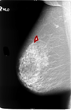 FILE: B_3057_1.RIGHT_MLO.OVERLAY TOTAL_ABNORMALITIES 1 ABNORMALITY 1 LESION_TYPE MASS SHAPE IRREGULAR MARGINS SPICULATED ASSESSMENT 4 SUBTLETY 3 PATHOLOGY MALIGNANT TOTAL_OUTLINES 1 BOUNDARY |