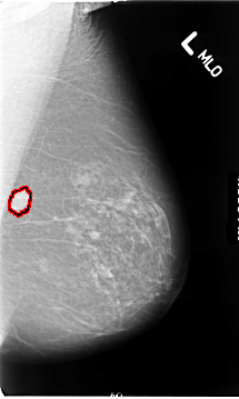 FILE: B_3081_1.LEFT_CC.OVERLAY TOTAL_ABNORMALITIES 1 ABNORMALITY 1 LESION_TYPE MASS SHAPE OVAL MARGINS SPICULATED ASSESSMENT 4 SUBTLETY 5 PATHOLOGY MALIGNANT TOTAL_OUTLINES 1 BOUNDARY |