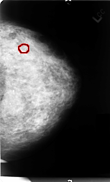 FILE: B_3082_1.LEFT_CC.OVERLAY TOTAL_ABNORMALITIES 1 ABNORMALITY 1 LESION_TYPE CALCIFICATION TYPE PLEOMORPHIC DISTRIBUTION CLUSTERED ASSESSMENT 4 SUBTLETY 2 PATHOLOGY MALIGNANT TOTAL_OUTLINES 1 BOUNDARY |