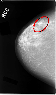 FILE: C_0034_1.RIGHT_CC.OVERLAY TOTAL_ABNORMALITIES 1 ABNORMALITY 1 LESION_TYPE MASS SHAPE IRREGULAR MARGINS SPICULATED ASSESSMENT 5 SUBTLETY 5 PATHOLOGY MALIGNANT TOTAL_OUTLINES 1 BOUNDARY |