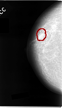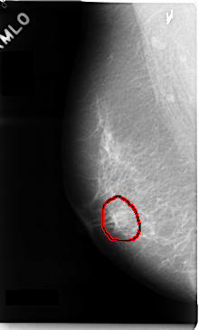 FILE: C_0035_1.RIGHT_CC.OVERLAY TOTAL_ABNORMALITIES 1 ABNORMALITY 1 LESION_TYPE MASS SHAPE OVAL MARGINS MICROLOBULATED ASSESSMENT 5 SUBTLETY 5 PATHOLOGY MALIGNANT TOTAL_OUTLINES 1 BOUNDARY |