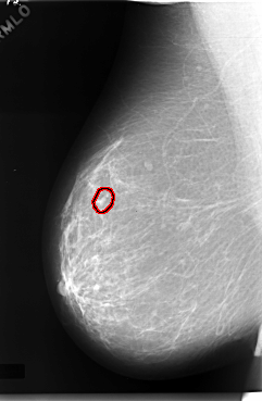 FILE: C_0057_1.RIGHT_CC.OVERLAY TOTAL_ABNORMALITIES 1 ABNORMALITY 1 LESION_TYPE CALCIFICATION TYPE PLEOMORPHIC DISTRIBUTION CLUSTERED ASSESSMENT 4 SUBTLETY 3 PATHOLOGY MALIGNANT TOTAL_OUTLINES 1 BOUNDARY |