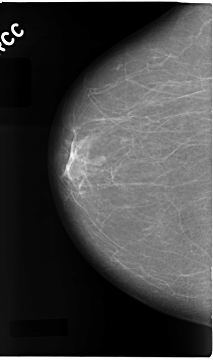FILE: C_0079_1.LEFT_CC.OVERLAY TOTAL_ABNORMALITIES 1 ABNORMALITY 1 LESION_TYPE MASS SHAPE IRREGULAR MARGINS SPICULATED ASSESSMENT 5 SUBTLETY 5 PATHOLOGY MALIGNANT TOTAL_OUTLINES 1 BOUNDARY |