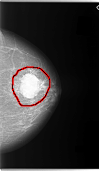 FILE: C_0088_1.LEFT_CC.OVERLAY TOTAL_ABNORMALITIES 1 ABNORMALITY 1 LESION_TYPE MASS SHAPE OVAL MARGINS MICROLOBULATED ASSESSMENT 5 SUBTLETY 5 PATHOLOGY MALIGNANT TOTAL_OUTLINES 1 BOUNDARY |
