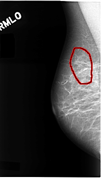 FILE: C_0099_1.RIGHT_MLO.OVERLAY TOTAL_ABNORMALITIES 1 ABNORMALITY 1 LESION_TYPE CALCIFICATION TYPE PLEOMORPHIC DISTRIBUTION CLUSTERED ASSESSMENT 5 SUBTLETY 5 PATHOLOGY MALIGNANT TOTAL_OUTLINES 1 BOUNDARY |