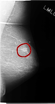 FILE: C_0118_1.LEFT_CC.OVERLAY TOTAL_ABNORMALITIES 1 ABNORMALITY 1 LESION_TYPE MASS SHAPE IRREGULAR MARGINS SPICULATED ASSESSMENT 5 SUBTLETY 5 PATHOLOGY MALIGNANT TOTAL_OUTLINES 1 BOUNDARY |