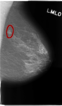 FILE: C_0135_1.LEFT_CC.OVERLAY TOTAL_ABNORMALITIES 1 ABNORMALITY 1 LESION_TYPE MASS SHAPE OVAL MARGINS MICROLOBULATED ASSESSMENT 4 SUBTLETY 5 PATHOLOGY MALIGNANT TOTAL_OUTLINES 1 BOUNDARY |