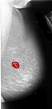 FILE: A_1009_1.RIGHT_CC.OVERLAY TOTAL_ABNORMALITIES 1 ABNORMALITY 1 LESION_TYPE MASS SHAPE IRREGULAR MARGINS SPICULATED ASSESSMENT 4 SUBTLETY 1 PATHOLOGY MALIGNANT TOTAL_OUTLINES 2 BOUNDARY CORE |