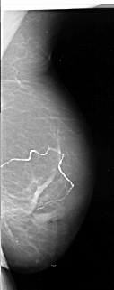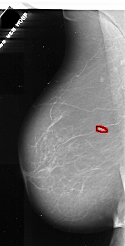 FILE: A_1073_1.LEFT_CC.OVERLAY TOTAL_ABNORMALITIES 1 ABNORMALITY 1 LESION_TYPE CALCIFICATION TYPE PLEOMORPHIC DISTRIBUTION CLUSTERED LESION_TYPE MASS SHAPE IRREGULAR MARGINS ILL_DEFINED ASSESSMENT 4 SUBTLETY 3 PATHOLOGY MALIGNANT TOTAL_OUTLINES 1 BOUNDARY |