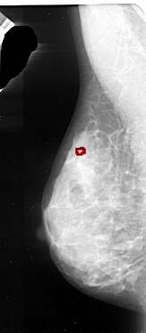 FILE: A_1092_1.LEFT_CC.OVERLAY TOTAL_ABNORMALITIES 1 ABNORMALITY 1 LESION_TYPE CALCIFICATION TYPE PUNCTATE DISTRIBUTION CLUSTERED ASSESSMENT 4 SUBTLETY 1 PATHOLOGY MALIGNANT TOTAL_OUTLINES 1 BOUNDARY |