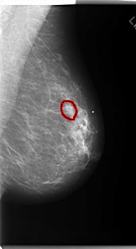 FILE: C_0170_1.LEFT_CC.OVERLAY TOTAL_ABNORMALITIES 1 ABNORMALITY 1 LESION_TYPE MASS SHAPE ARCHITECTURAL_DISTORTION MARGINS SPICULATED ASSESSMENT 5 SUBTLETY 5 PATHOLOGY MALIGNANT TOTAL_OUTLINES 1 BOUNDARY |