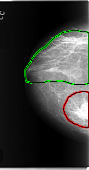FILE: C_0189_1.RIGHT_CC.OVERLAY TOTAL_ABNORMALITIES 2 ABNORMALITY 1 LESION_TYPE CALCIFICATION TYPE PLEOMORPHIC DISTRIBUTION CLUSTERED LESION_TYPE MASS SHAPE ROUND MARGINS SPICULATED ASSESSMENT 5 SUBTLETY 5 PATHOLOGY MALIGNANT TOTAL_OUTLINES 1 BOUNDARY ABNORMALITY 2 LESION_TYPE CALCIFICATION TYPE PLEOMORPHIC DISTRIBUTION REGIONAL ASSESSMENT 5 SUBTLETY 5 PATHOLOGY MALIGNANT TOTAL_OUTLINES 1 BOUNDARY |