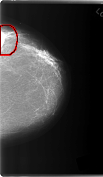 FILE: C_0219_1.LEFT_CC.OVERLAY TOTAL_ABNORMALITIES 1 ABNORMALITY 1 LESION_TYPE MASS SHAPE OVAL MARGINS CIRCUMSCRIBED ASSESSMENT 5 SUBTLETY 5 PATHOLOGY MALIGNANT TOTAL_OUTLINES 1 BOUNDARY |