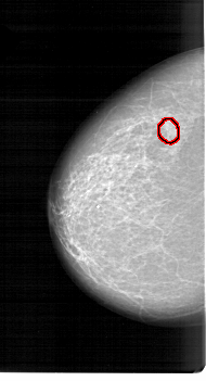 FILE: A_1261_1.RIGHT_MLO.OVERLAY TOTAL_ABNORMALITIES 1 ABNORMALITY 1 LESION_TYPE MASS SHAPE LOBULATED MARGINS CIRCUMSCRIBED ASSESSMENT 4 SUBTLETY 5 PATHOLOGY MALIGNANT TOTAL_OUTLINES 1 BOUNDARY |