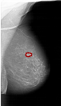 FILE: A_1261_1.RIGHT_CC.OVERLAY TOTAL_ABNORMALITIES 1 ABNORMALITY 1 LESION_TYPE MASS SHAPE LOBULATED MARGINS CIRCUMSCRIBED ASSESSMENT 4 SUBTLETY 5 PATHOLOGY MALIGNANT TOTAL_OUTLINES 1 BOUNDARY |