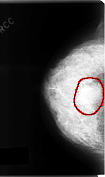FILE: C_0166_1.RIGHT_CC.OVERLAY TOTAL_ABNORMALITIES 1 ABNORMALITY 1 LESION_TYPE MASS SHAPE OVAL MARGINS SPICULATED ASSESSMENT 5 SUBTLETY 5 PATHOLOGY MALIGNANT TOTAL_OUTLINES 1 BOUNDARY |