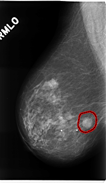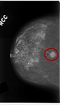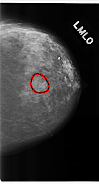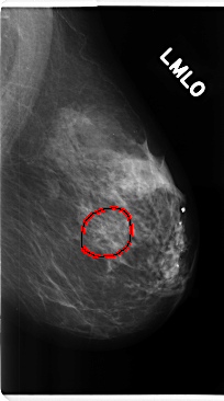 FILE: C_0226_1.RIGHT_MLO.OVERLAY TOTAL_ABNORMALITIES 1 ABNORMALITY 1 LESION_TYPE MASS SHAPE ROUND MARGINS SPICULATED ASSESSMENT 5 SUBTLETY 5 PATHOLOGY MALIGNANT TOTAL_OUTLINES 1 BOUNDARY |