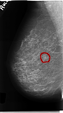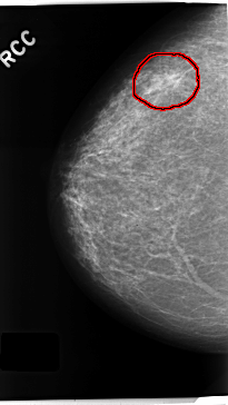 FILE: C_0230_1.RIGHT_CC.OVERLAY TOTAL_ABNORMALITIES 1 ABNORMALITY 1 LESION_TYPE MASS SHAPE IRREGULAR MARGINS SPICULATED ASSESSMENT 5 SUBTLETY 5 PATHOLOGY MALIGNANT TOTAL_OUTLINES 1 BOUNDARY |
