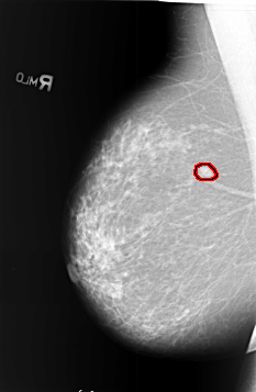FILE: B_3405_1.RIGHT_MLO.OVERLAY TOTAL_ABNORMALITIES 1 ABNORMALITY 1 LESION_TYPE MASS SHAPE OVAL MARGINS SPICULATED ASSESSMENT 5 SUBTLETY 4 PATHOLOGY MALIGNANT TOTAL_OUTLINES 1 BOUNDARY |