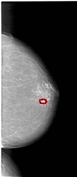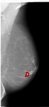 FILE: A_1621_1.RIGHT_CC.OVERLAY TOTAL_ABNORMALITIES 1 ABNORMALITY 1 LESION_TYPE CALCIFICATION TYPE PLEOMORPHIC DISTRIBUTION CLUSTERED LESION_TYPE MASS SHAPE LOBULATED MARGINS ILL_DEFINED ASSESSMENT 4 SUBTLETY 3 PATHOLOGY MALIGNANT TOTAL_OUTLINES 1 BOUNDARY |