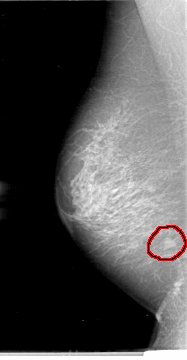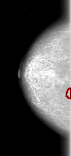 FILE: D_4096_1.RIGHT_CC.OVERLAY TOTAL_ABNORMALITIES 1 ABNORMALITY 1 LESION_TYPE MASS SHAPE OVAL MARGINS OBSCURED ASSESSMENT 0 SUBTLETY 5 PATHOLOGY MALIGNANT TOTAL_OUTLINES 1 BOUNDARY |