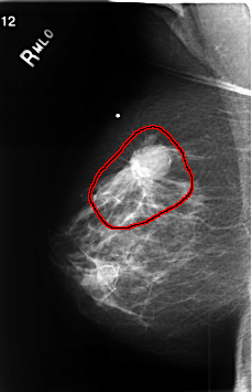 FILE: C_0457_1.RIGHT_MLO.OVERLAY TOTAL_ABNORMALITIES 1 ABNORMALITY 1 LESION_TYPE MASS SHAPE LOBULATED MARGINS SPICULATED ASSESSMENT 5 SUBTLETY 5 PATHOLOGY MALIGNANT TOTAL_OUTLINES 1 BOUNDARY |