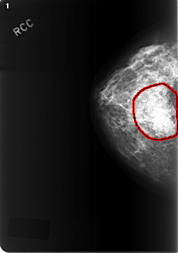 FILE: C_0471_1.RIGHT_CC.OVERLAY TOTAL_ABNORMALITIES 1 ABNORMALITY 1 LESION_TYPE MASS SHAPE ASYMMETRIC_BREAST_TISSUE MARGINS ILL_DEFINED ASSESSMENT 5 SUBTLETY 5 PATHOLOGY MALIGNANT TOTAL_OUTLINES 1 BOUNDARY |
