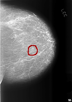 FILE: C_0496_1.LEFT_CC.OVERLAY TOTAL_ABNORMALITIES 1 ABNORMALITY 1 LESION_TYPE CALCIFICATION TYPE AMORPHOUS DISTRIBUTION CLUSTERED ASSESSMENT 4 SUBTLETY 4 PATHOLOGY MALIGNANT TOTAL_OUTLINES 1 BOUNDARY |