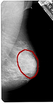FILE: A_1425_1.RIGHT_CC.OVERLAY TOTAL_ABNORMALITIES 1 ABNORMALITY 1 LESION_TYPE MASS SHAPE OVAL MARGINS OBSCURED ASSESSMENT 4 SUBTLETY 3 PATHOLOGY BENIGN TOTAL_OUTLINES 1 BOUNDARY |