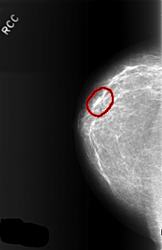 FILE: C_0369_1.RIGHT_CC.OVERLAY TOTAL_ABNORMALITIES 1 ABNORMALITY 1 LESION_TYPE MASS SHAPE LOBULATED MARGINS CIRCUMSCRIBED ASSESSMENT 3 SUBTLETY 5 PATHOLOGY BENIGN TOTAL_OUTLINES 1 BOUNDARY |