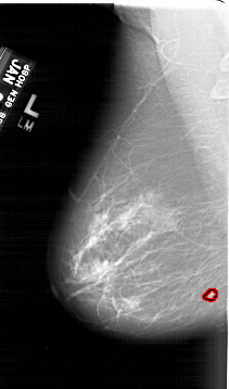 FILE: A_1687_1.LEFT_CC.OVERLAY TOTAL_ABNORMALITIES 1 ABNORMALITY 1 LESION_TYPE MASS SHAPE LOBULATED MARGINS ILL_DEFINED ASSESSMENT 4 SUBTLETY 4 PATHOLOGY BENIGN TOTAL_OUTLINES 1 BOUNDARY |