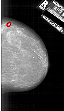 FILE: A_1689_1.RIGHT_CC.OVERLAY TOTAL_ABNORMALITIES 1 ABNORMALITY 1 LESION_TYPE MASS SHAPE OVAL MARGINS CIRCUMSCRIBED ASSESSMENT 4 SUBTLETY 3 PATHOLOGY BENIGN TOTAL_OUTLINES 1 BOUNDARY |