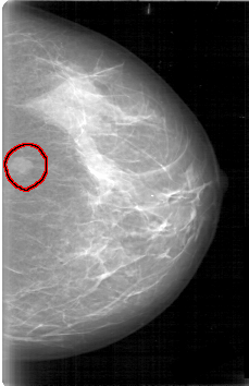 FILE: D_4006_1.LEFT_CC.OVERLAY TOTAL_ABNORMALITIES 1 ABNORMALITY 1 LESION_TYPE MASS SHAPE OVAL MARGINS OBSCURED ASSESSMENT 0 SUBTLETY 5 PATHOLOGY BENIGN TOTAL_OUTLINES 1 BOUNDARY |