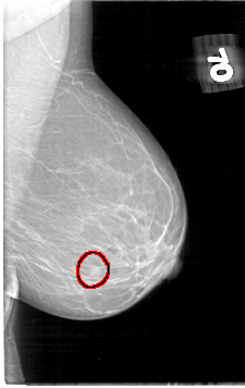 FILE: D_4060_1.LEFT_CC.OVERLAY TOTAL_ABNORMALITIES 1 ABNORMALITY 1 LESION_TYPE MASS SHAPE ROUND MARGINS OBSCURED ASSESSMENT 0 SUBTLETY 4 PATHOLOGY BENIGN TOTAL_OUTLINES 1 BOUNDARY |