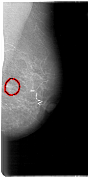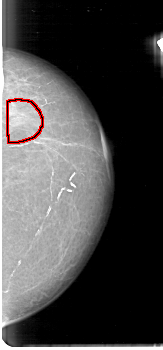 FILE: D_4072_1.LEFT_CC.OVERLAY TOTAL_ABNORMALITIES 1 ABNORMALITY 1 LESION_TYPE MASS SHAPE IRREGULAR MARGINS OBSCURED ASSESSMENT 0 SUBTLETY 2 PATHOLOGY BENIGN TOTAL_OUTLINES 1 BOUNDARY |