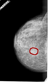 FILE: A_1921_1.LEFT_CC.OVERLAY TOTAL_ABNORMALITIES 1 ABNORMALITY 1 LESION_TYPE MASS SHAPE OVAL MARGINS OBSCURED ASSESSMENT 3 SUBTLETY 2 PATHOLOGY BENIGN TOTAL_OUTLINES 1 BOUNDARY |