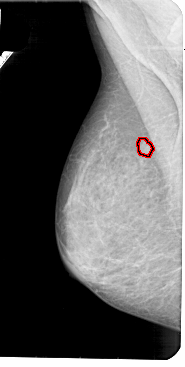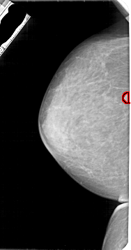 FILE: A_1947_1.LEFT_CC.OVERLAY TOTAL_ABNORMALITIES 1 ABNORMALITY 1 LESION_TYPE MASS SHAPE ROUND MARGINS CIRCUMSCRIBED ASSESSMENT 3 SUBTLETY 4 PATHOLOGY BENIGN TOTAL_OUTLINES 1 BOUNDARY |