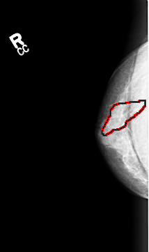 FILE: B_3003_1.RIGHT_MLO.OVERLAY TOTAL_ABNORMALITIES 1 ABNORMALITY 1 LESION_TYPE CALCIFICATION TYPE FINE_LINEAR_BRANCHING DISTRIBUTION SEGMENTAL ASSESSMENT 5 SUBTLETY 3 PATHOLOGY MALIGNANT TOTAL_OUTLINES 1 BOUNDARY |