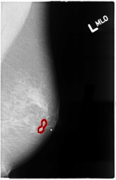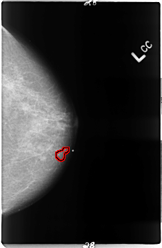 FILE: B_3038_1.LEFT_CC.OVERLAY TOTAL_ABNORMALITIES 1 ABNORMALITY 1 LESION_TYPE MASS SHAPE LOBULATED MARGINS CIRCUMSCRIBED ASSESSMENT 4 SUBTLETY 3 PATHOLOGY MALIGNANT TOTAL_OUTLINES 1 BOUNDARY |