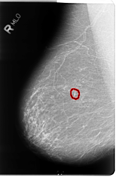 FILE: B_3049_1.RIGHT_MLO.OVERLAY TOTAL_ABNORMALITIES 1 ABNORMALITY 1 LESION_TYPE CALCIFICATION TYPE PLEOMORPHIC DISTRIBUTION CLUSTERED ASSESSMENT 4 SUBTLETY 4 PATHOLOGY BENIGN TOTAL_OUTLINES 1 BOUNDARY |