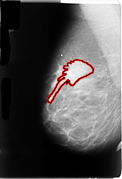FILE: B_3051_1.RIGHT_MLO.OVERLAY TOTAL_ABNORMALITIES 1 ABNORMALITY 1 LESION_TYPE MASS SHAPE IRREGULAR-ARCHITECTURAL_DISTORTION MARGINS OBSCURED-ILL_DEFINED-SPICULATED ASSESSMENT 4 SUBTLETY 3 PATHOLOGY MALIGNANT TOTAL_OUTLINES 1 BOUNDARY |
