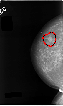 FILE: C_0043_1.RIGHT_CC.OVERLAY TOTAL_ABNORMALITIES 1 ABNORMALITY 1 LESION_TYPE MASS SHAPE IRREGULAR MARGINS MICROLOBULATED ASSESSMENT 5 SUBTLETY 5 PATHOLOGY MALIGNANT TOTAL_OUTLINES 1 BOUNDARY |