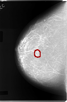 FILE: C_0057_1.RIGHT_CC.OVERLAY TOTAL_ABNORMALITIES 1 ABNORMALITY 1 LESION_TYPE CALCIFICATION TYPE PLEOMORPHIC DISTRIBUTION CLUSTERED ASSESSMENT 4 SUBTLETY 3 PATHOLOGY MALIGNANT TOTAL_OUTLINES 1 BOUNDARY |