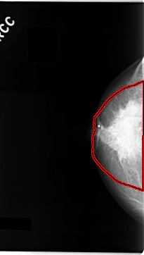 FILE: C_0061_1.RIGHT_CC.OVERLAY TOTAL_ABNORMALITIES 1 ABNORMALITY 1 LESION_TYPE MASS SHAPE IRREGULAR MARGINS SPICULATED ASSESSMENT 5 SUBTLETY 5 PATHOLOGY MALIGNANT TOTAL_OUTLINES 1 BOUNDARY |