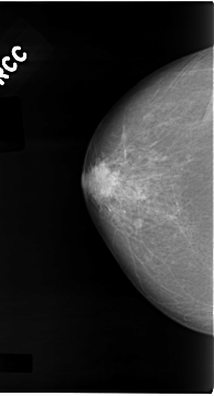 FILE: C_0074_1.LEFT_CC.OVERLAY TOTAL_ABNORMALITIES 1 ABNORMALITY 1 LESION_TYPE MASS SHAPE IRREGULAR MARGINS SPICULATED ASSESSMENT 5 SUBTLETY 5 PATHOLOGY MALIGNANT TOTAL_OUTLINES 1 BOUNDARY |