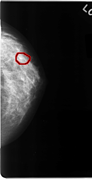 FILE: C_0090_1.LEFT_CC.OVERLAY TOTAL_ABNORMALITIES 1 ABNORMALITY 1 LESION_TYPE CALCIFICATION TYPE PLEOMORPHIC DISTRIBUTION CLUSTERED ASSESSMENT 4 SUBTLETY 4 PATHOLOGY MALIGNANT TOTAL_OUTLINES 1 BOUNDARY |