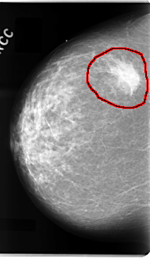 FILE: C_0094_1.RIGHT_CC.OVERLAY TOTAL_ABNORMALITIES 1 ABNORMALITY 1 LESION_TYPE MASS SHAPE IRREGULAR MARGINS ILL_DEFINED ASSESSMENT 5 SUBTLETY 5 PATHOLOGY MALIGNANT TOTAL_OUTLINES 1 BOUNDARY |